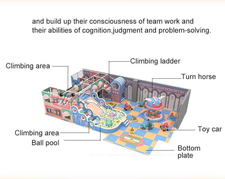 Un parque infantil interior es un lugar divertido y seguro para que los niños jueguen y exploren. Suele estar diseñado con estructuras y equipos de juego blandos, como piscinas de pelotas, toboganes, túneles y estructuras de escalada, que ofrecen un entorno seguro para que los niños corran, salten, trepen y jueguen.