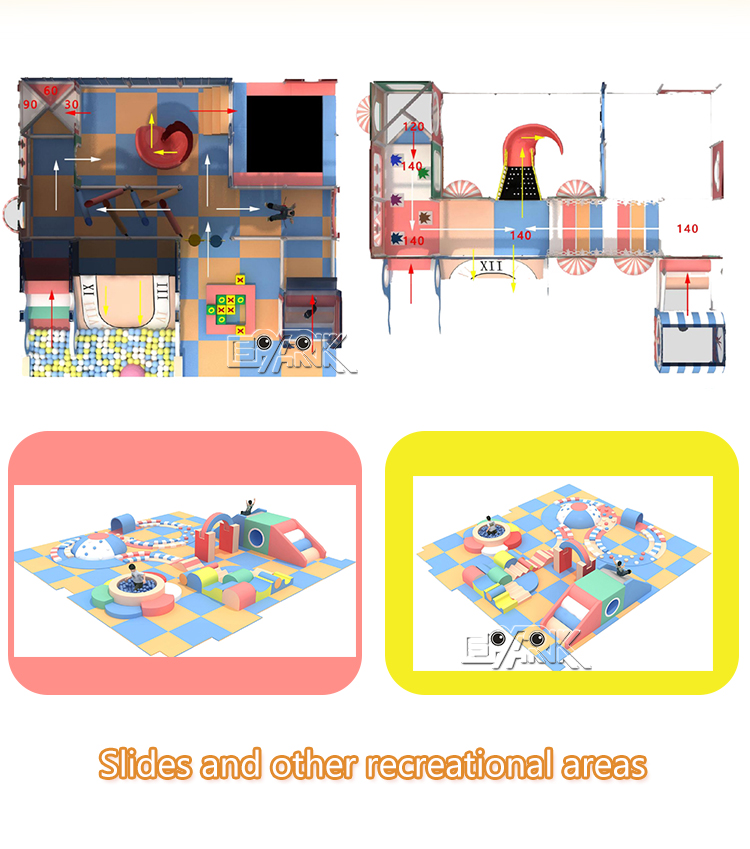 A tailored indoor playground from EPARK is sculpted to your exact footprint, age demographic and business model, harmonizing garden-fresh aesthetics—lemon-yellow frames, flower-trimmed canopies and sapphire slides—with trampoline zones, geometric ball pits and storybook cottages into one cohesive discovery world. Every triangular step, transparent chute and character mural is precision-positioned via CAD to optimize sightlines, eliminate congestion and extend session duration. Non-toxic polymers, seamless padding and ASTM-certified structural integrity ensure worry-free play, while snap-together modularity empowers you to refresh themes seasonally or scale upward without operational downtime—delivering sustained engagement and revenue growth for family entertainment centers, retail destinations and hospitality-integrated venues.